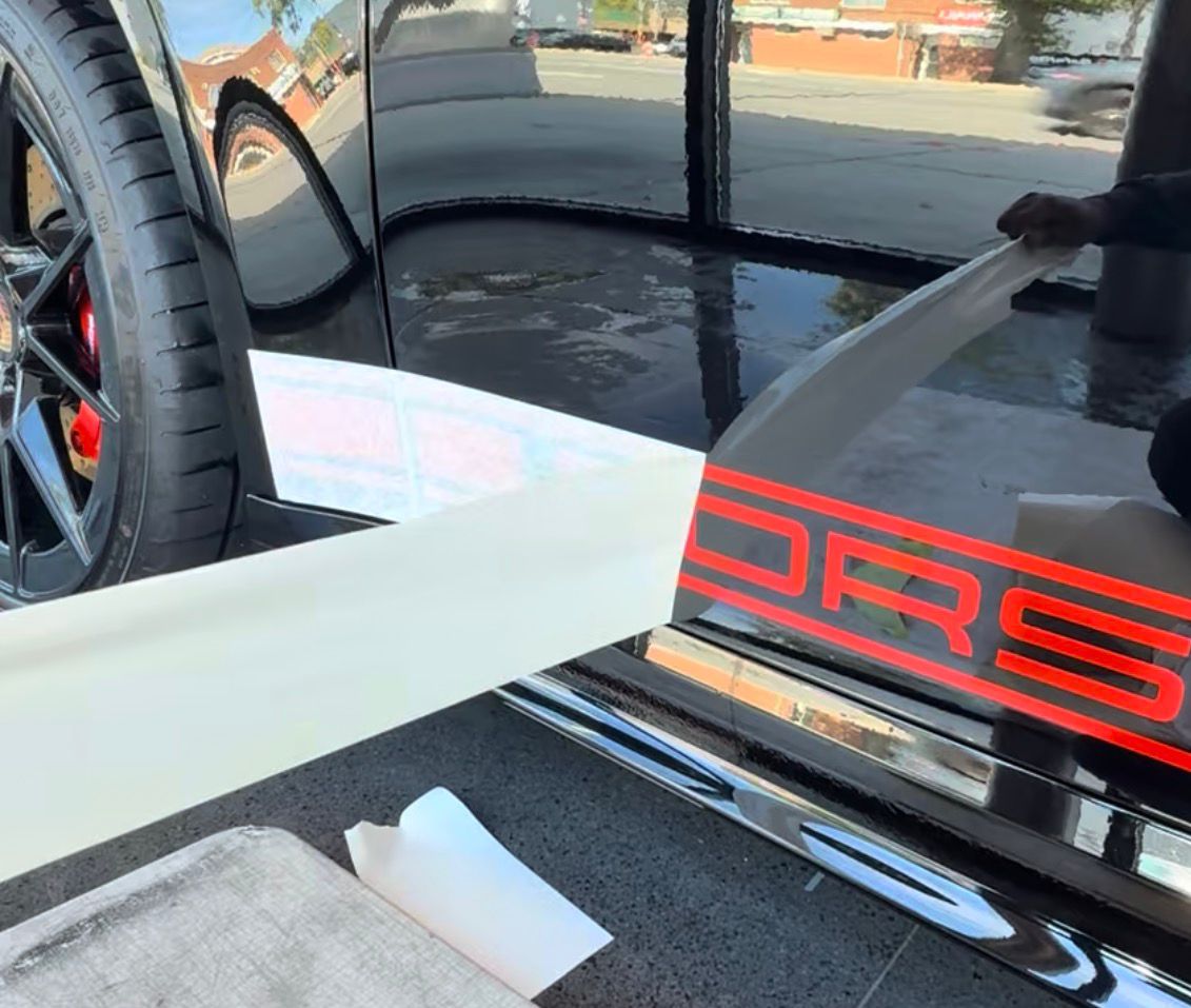 a thin, flexible film made of polyvinyl chloride (PVC) that is applied to the exterior surfaces of objects, most commonly vehicles, to change their appearance or provide protection. It features a pressure-sensitive adhesive backing that allows it to conform to complex curves and contours when heated, acting like a "temporary tattoo" for a car's original paint.