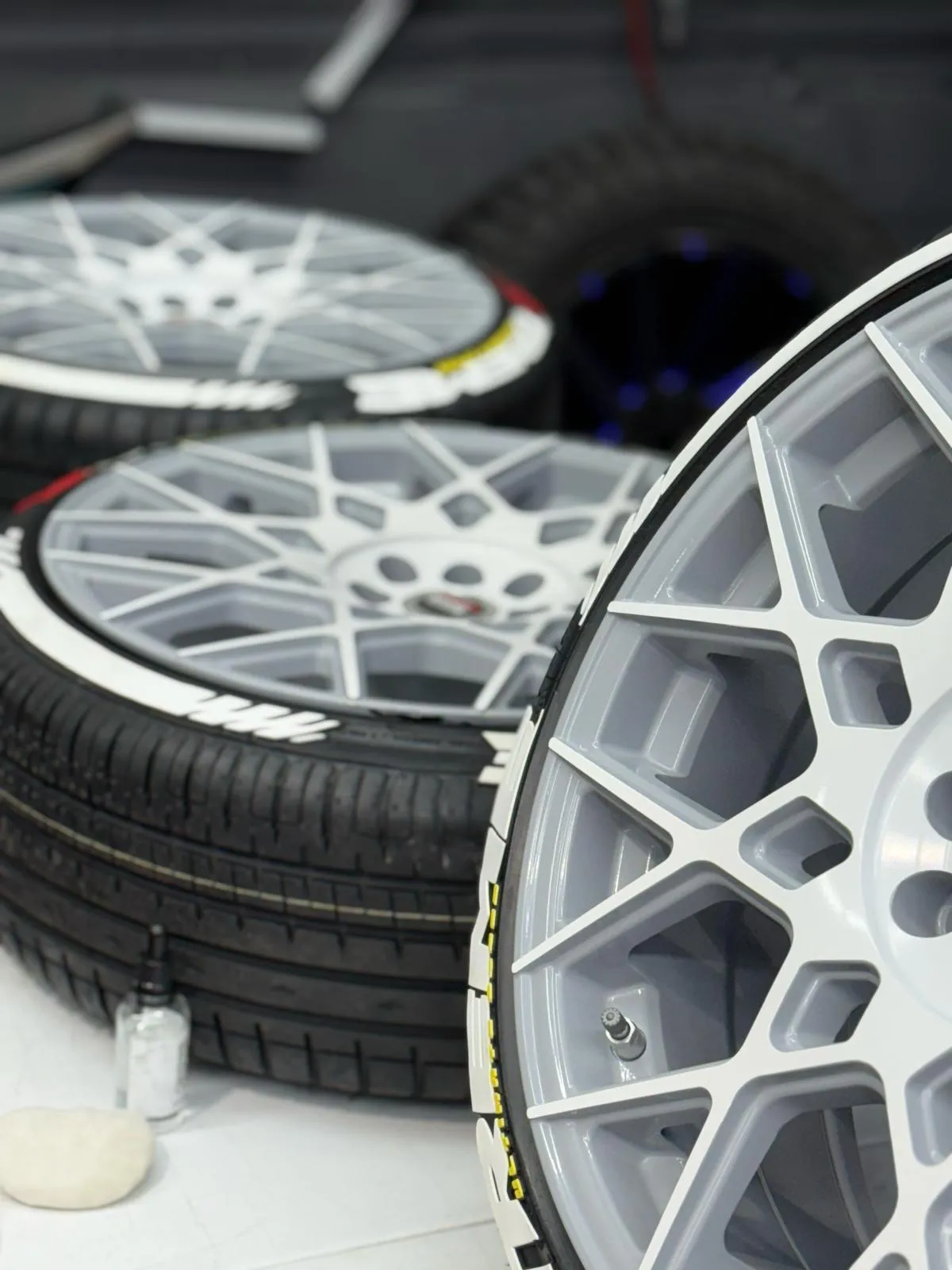 Premium wheels and performance tire packages selected for stance, grip, and driving style—mounted and balanced in-house.